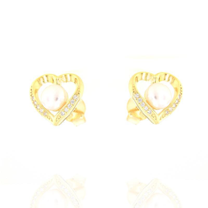 Orecchini in argento dorato e zirconi perla di fiume cuore