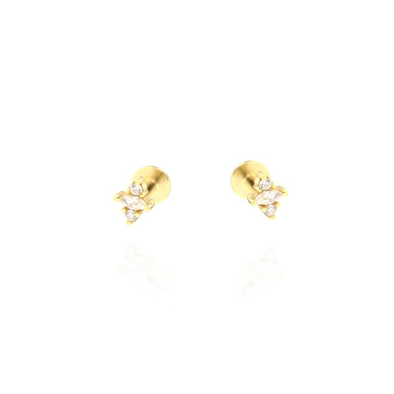 Orecchini a piercing in argento dorato e zirconi