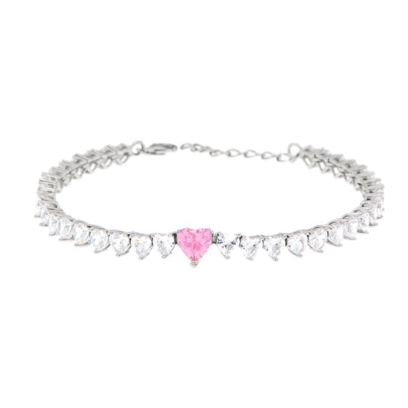 Bracciale tennis in argento con zirconi cuore rosa