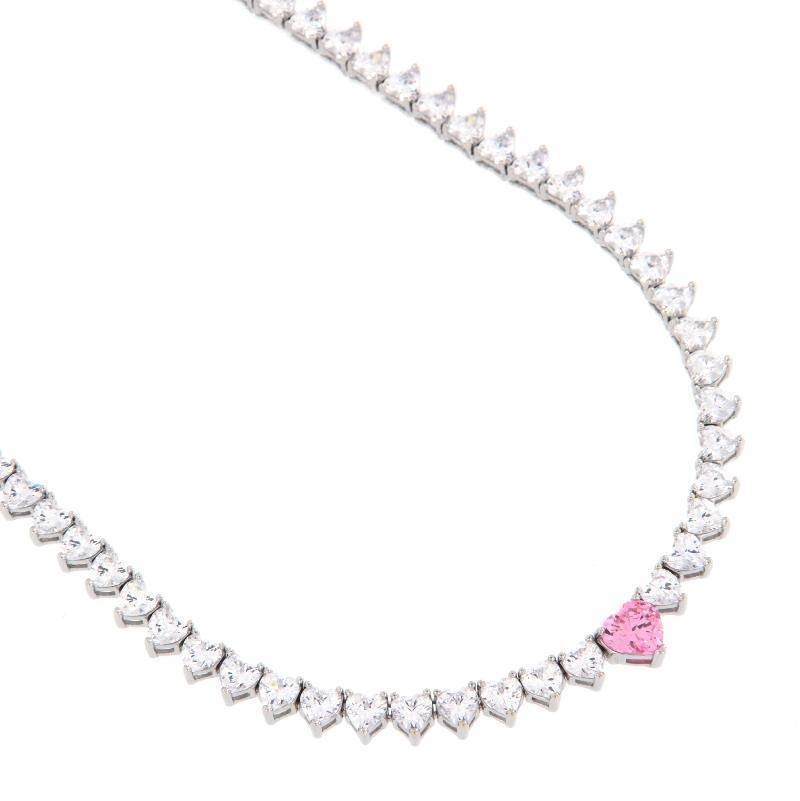 Collier in argento rodiato e zirconi Cuori, centrale Rosa